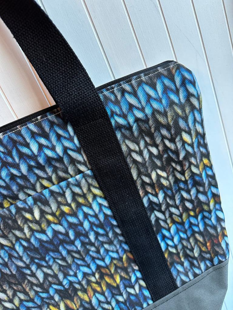 This is the prefect over the shoulder tote to carry all the things to knit night.